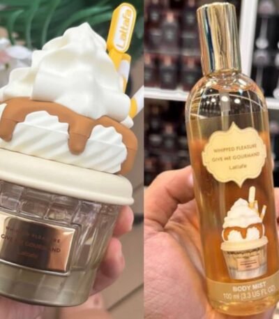 - تتكون مقدمة العطر من نفحات الكب كيك، وقلب العطر من القرفة واللوز وكريمة السكر، أما قاعدة العطر فتحتوي على الفانيليا والمسك وكريمة الزبدة.